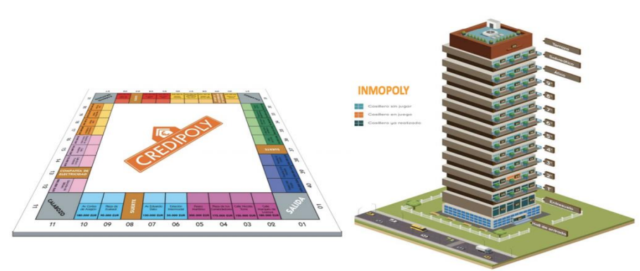 El curso incluye un cuestionarios gamificados denominados CREDIPOLY e INMOPOLY a través del cual los participantes ponen en práctica los conocimientos adquiridos a lo largo del programa en un entorno atractivo, dinámico y retador. Los participantes deberán resolver 115 preguntas relacionadas con los contenidos del curso en cada uno de los juegos. En caso de acierto, el participante obtendrá el valor patrimonial reflejado en cada casilla del juego. En caso de no acierto, los inmuebles se asocian a una determinada carga hipotecaria. El ganador será aquél que obtenga un mayor valor patrimonial neto.